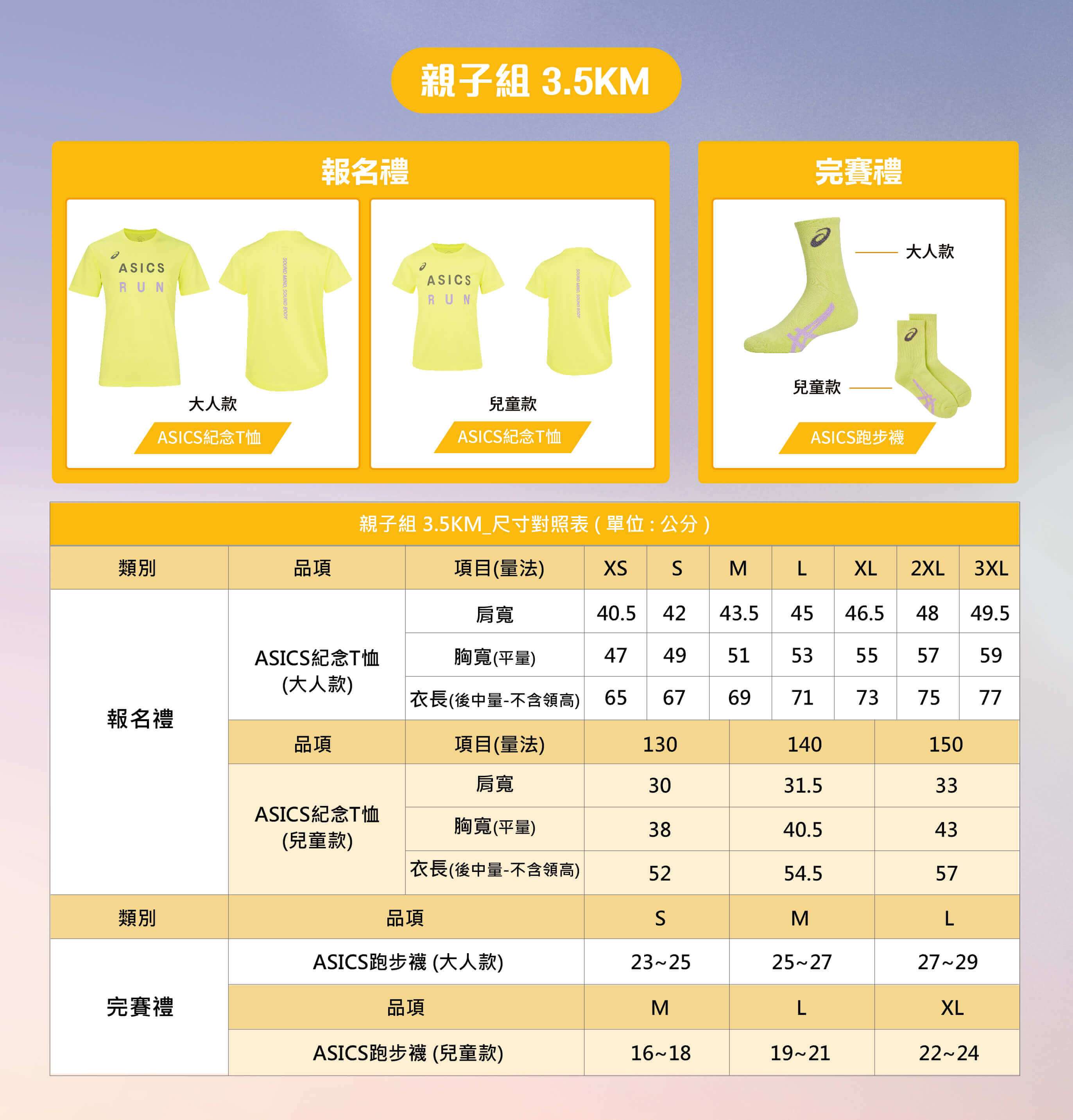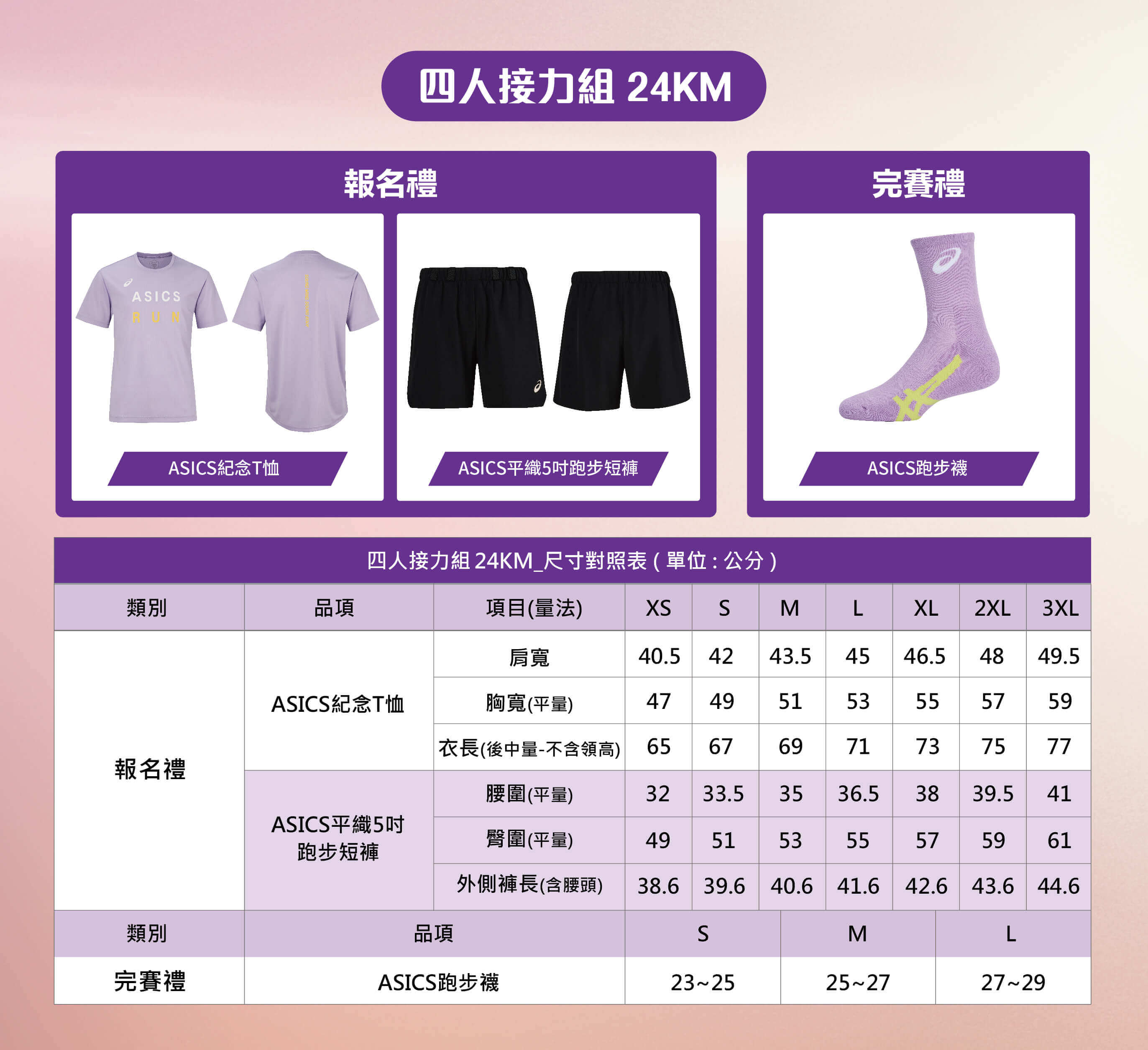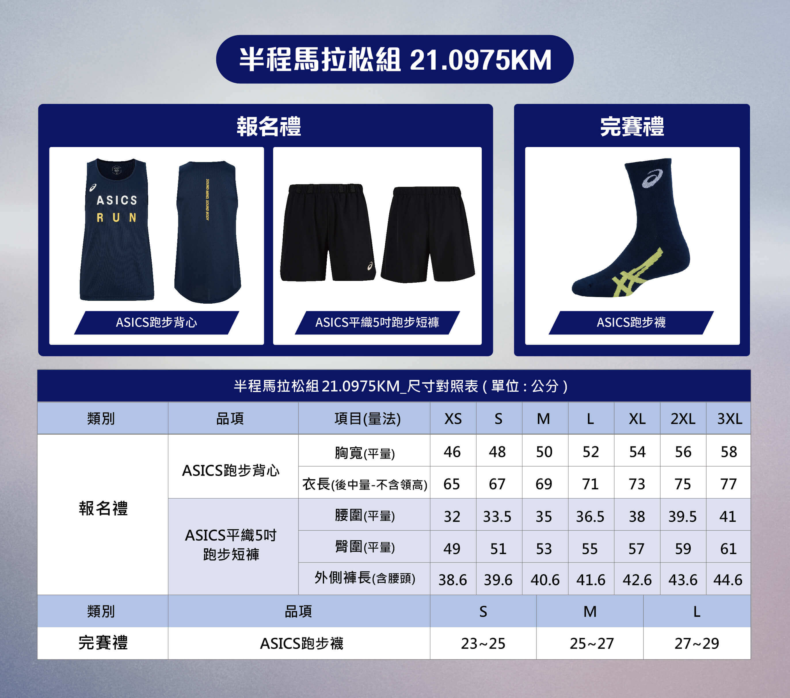 ASICS RELAY 完賽風衣外套尺寸對照表(單位:公分)